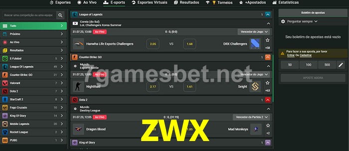 O zwx oferece uma grande seleção de opções de apostas em e-sports com probabilidades competitivas